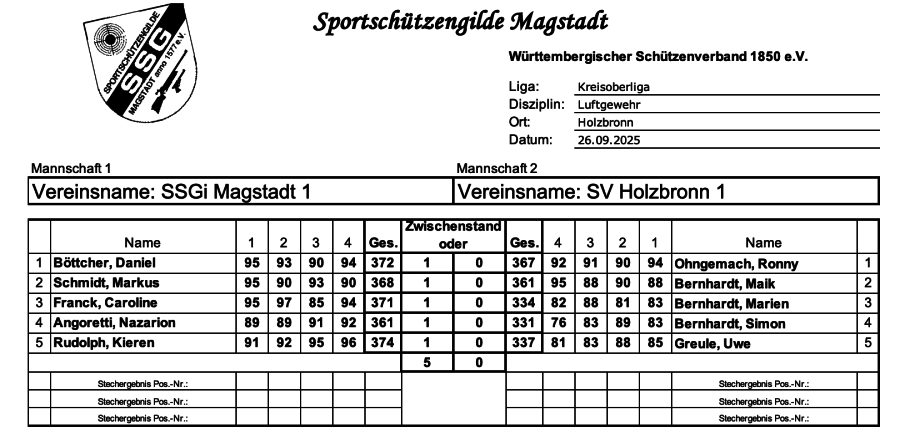 1.Wettkampf SSGi Magstadt 1 : SV Holzbronn 1